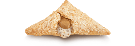 ほくほくのおいもフィリングと、ザクザク食感が楽しいキャラメルコーンクラッシュ入りのおいものチョコクリームの2種のフィリングを、何層にも重ねたサクサクのパイ生地で包みました。さらに、さつまいもの皮をイメージしたパイ生地にはキャラメルの風味を配合。