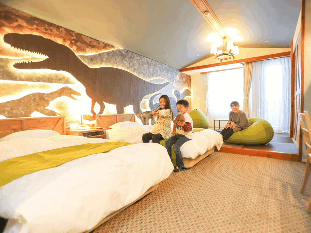 • 特徴ゲレンデ直結のリゾートホテルで、恐竜ルームやメゾネットルームなど、子供が喜ぶお部屋がある。雪遊び広場やスノーラフティングなど、家族で楽しめるアクティビティが豊富。