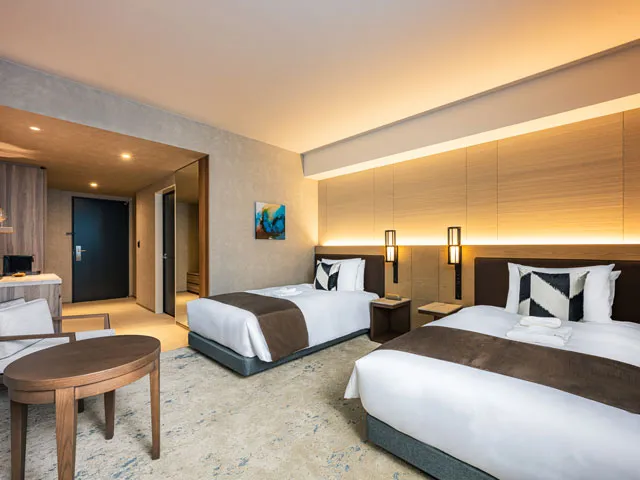 - 特徴:ベルギー調の気品ある空間、シモンズ製ベッド、ミラブルシャワーヘッド、女性用アメニティ充実。