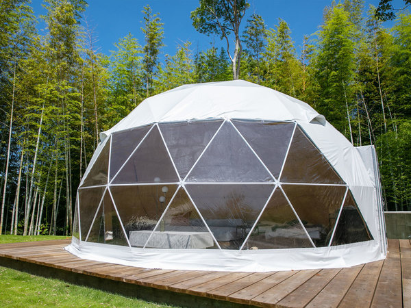 綺麗で広いキャンプ場で、人の気配が感じられる点も安心。グランピングタイプなら贅沢にプライベートも守られる!