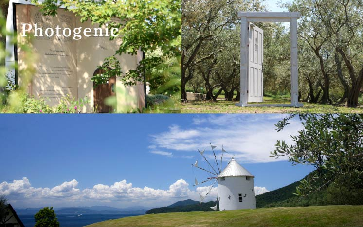 - 概要:約2,000本のオリーブの木に囲まれた地中海風の公園。写真スポット・ギリシャ風車・オリーブ記念館・ハーブ温室などオリーブに関する多彩な施設がある。