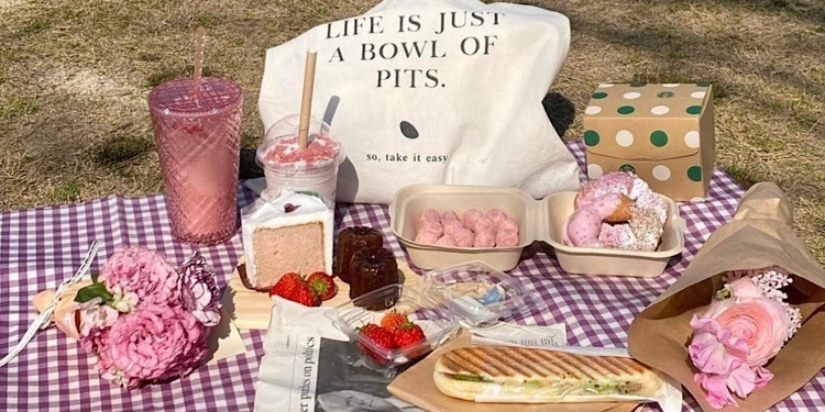 ベッドの上にスイーツやドリンクを並べて「おしゃピク風」に撮るのもおすすめです。