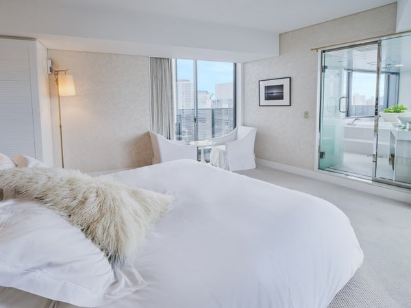 - 梅田・茶屋町にある、全室バルコニー付きの豪華なホテル。