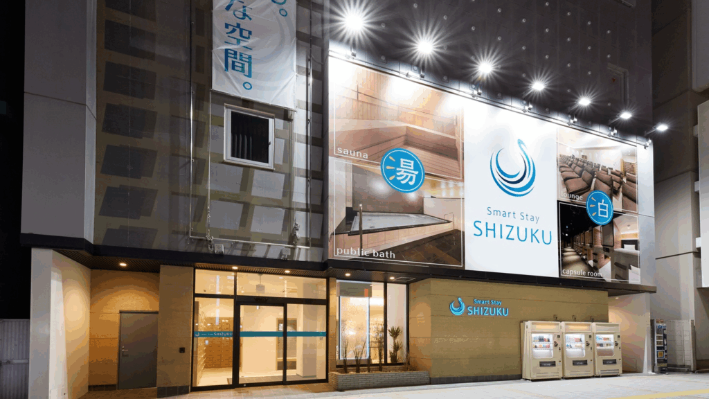 駅直結で観光も便利、女性フロアがあるカプセルタイプホテル併設大型のスパ施設なのでサウナ旅にはぴったり!