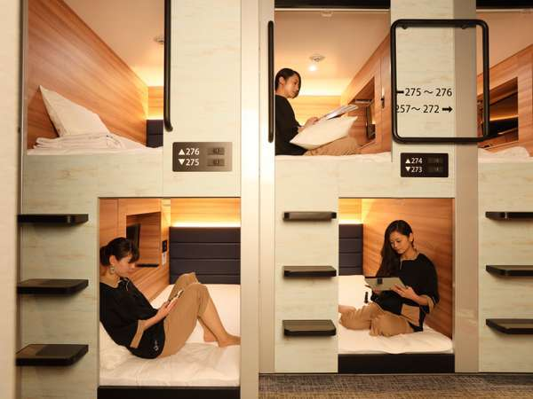 カプセルタイプなので、一人でも周りの目を気にすることなく宿泊できる!女性フロアやお風呂が充実しているのも嬉しい!
